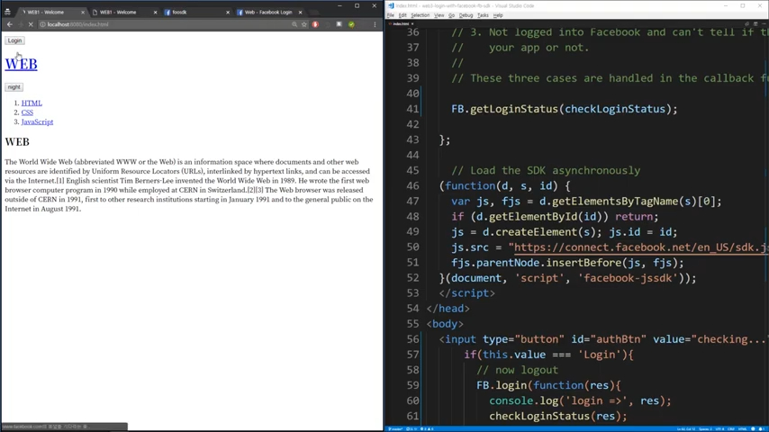 웹 브라우저 위에서 자바스크립트를 이용해서 페이스북/구글로 로그인하기 기능을 구현하는 방법에 대한 수업입니다.